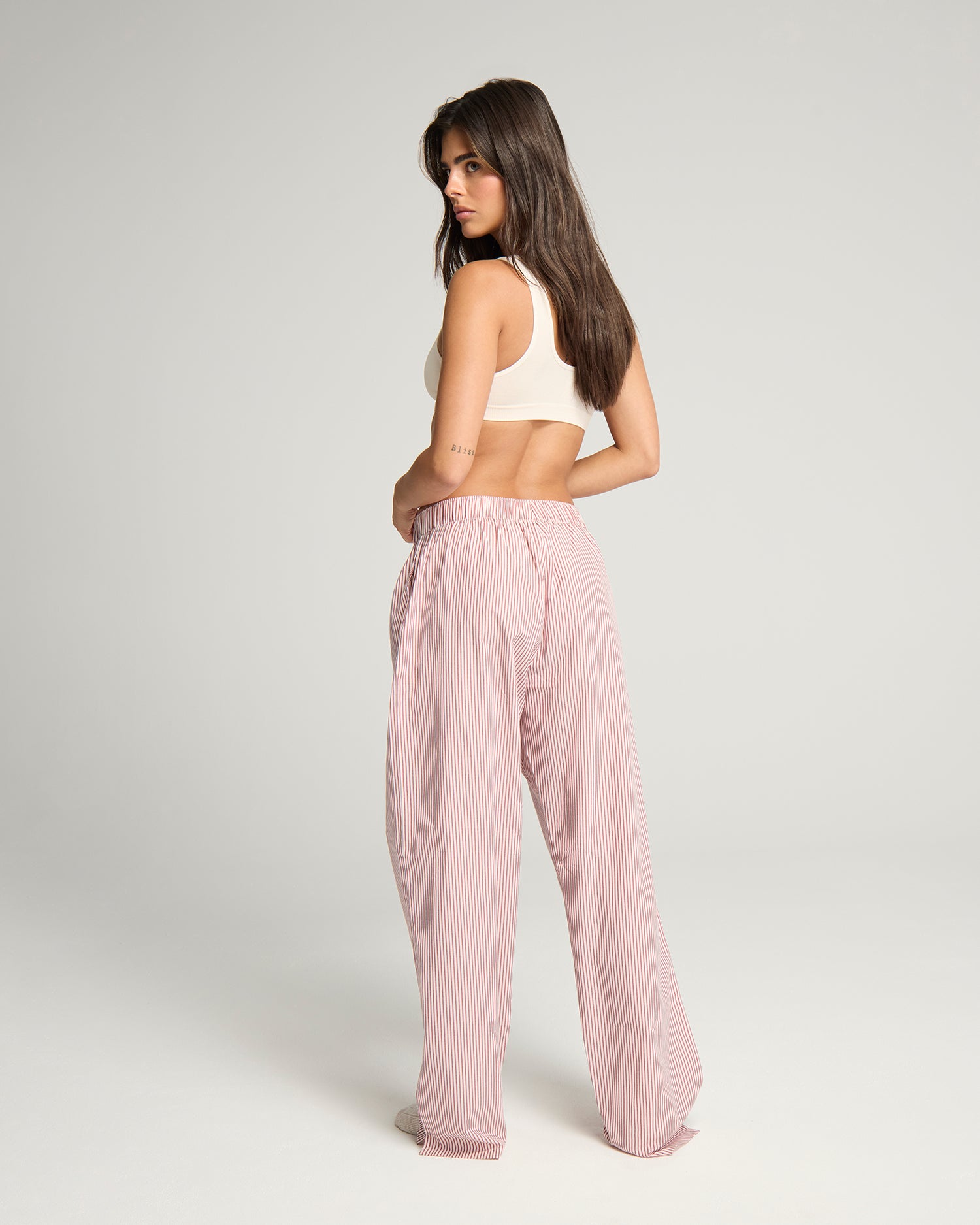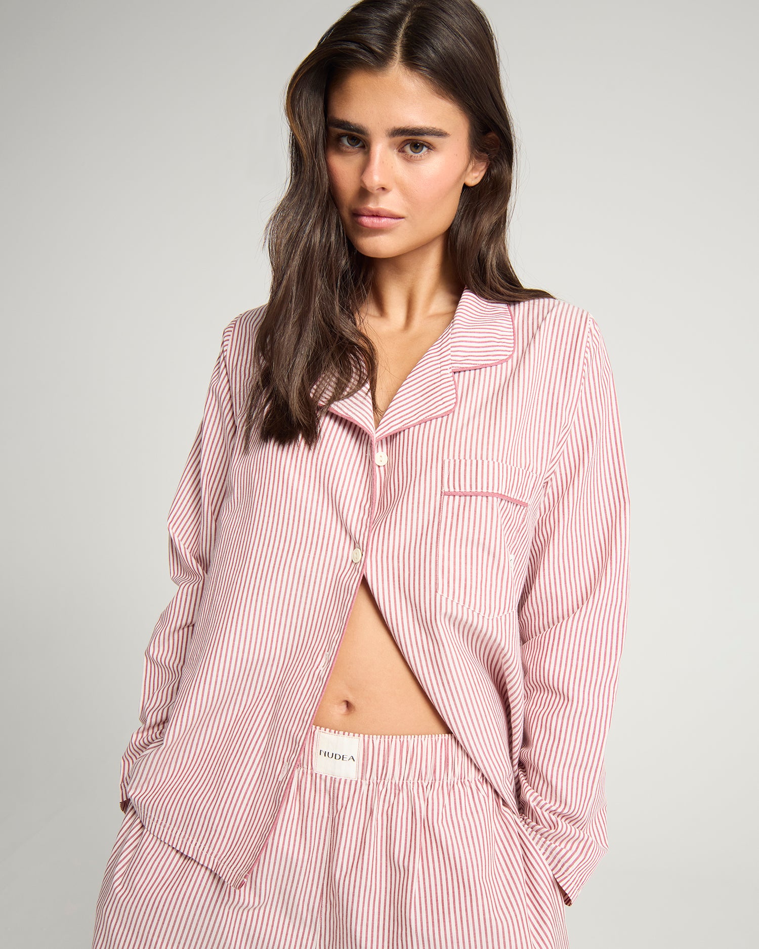 The perfect gift set. A boxy fit shirt with classic collar and timeless piping detail, paired with wide-leg elasticated trousers. Finished with modern branded detailing, this effortlessly chic set is made for lounging, gifting or styling into your everyday wardrobe.