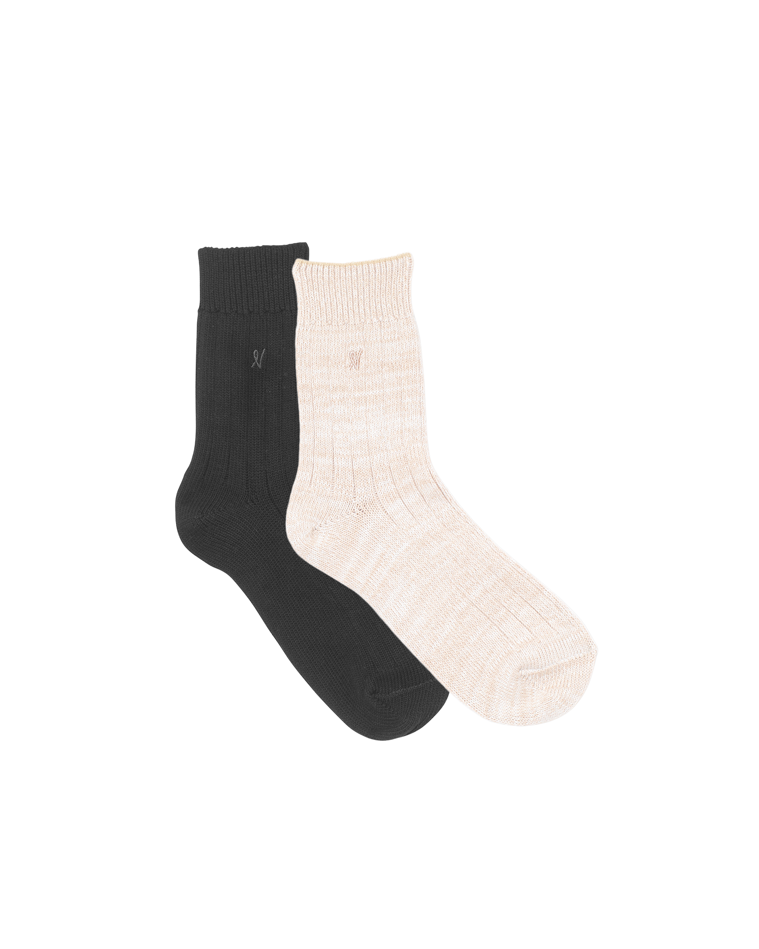 The Organic Cotton Socks 2 Pack - Black/Oatmeal