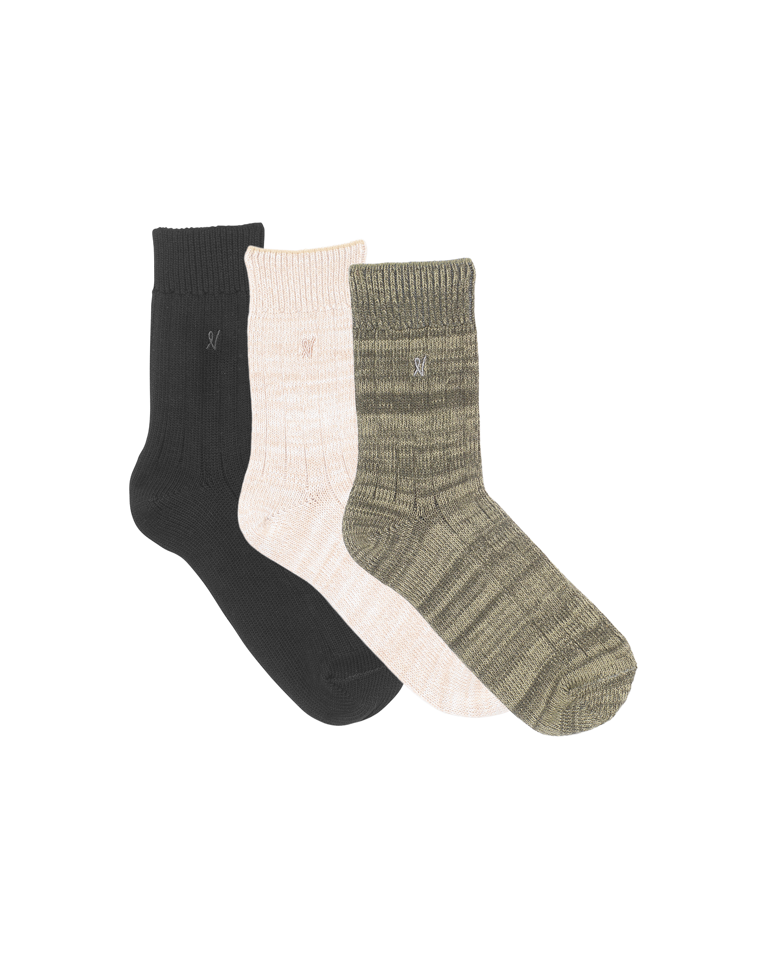 The Organic Cotton Socks 3 Pack - Black/Oatmeal/Sage